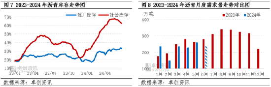 除去沥青产量的季节性增长以外,较高的库存水平仍然是下半年供应端的主要压力,截至6月底全国沥青社会库存水平仍然处在近三年来的最高水平,且持续时间明显更长,因此下半年供应端的总体压力仍然较大。