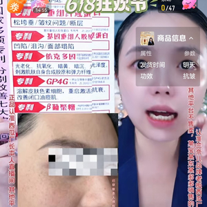 主播们在直播间里是如何推销产品的呢?“你们如果说烂脸严重的、长痘痘、长粉刺的,你的皮肤真的容貌焦虑的……真的想要整张脸年轻3到5岁,那你们就一定要坚持使用……”5月30日,记者在“石榴榴阿唯一小号”直播间听到主播如此介绍其推销的面玑时光植萃舒缓龙井水。6月17日,记者在该直播间听到同一位主播又用类似的话语介绍面玑时光抗自由基凝露+超光子溶斑素的叠加作用,并且称“皮肤真的暗沉,蜡黄没有光泽”的消费者也要坚持使用。