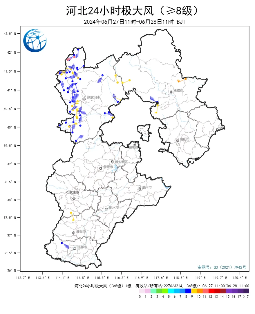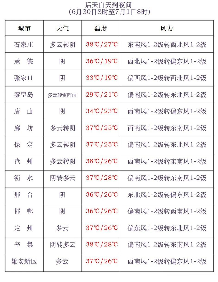 河北省气象台2024年6月28日11时发布天气预报: