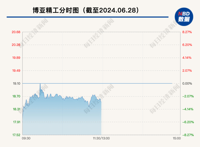 二级市场方面,截至6月28日午间收盘,博亚精工股价报18.53元,下跌2.98%,最新市值为16亿元。