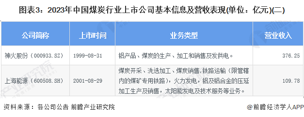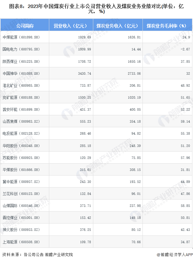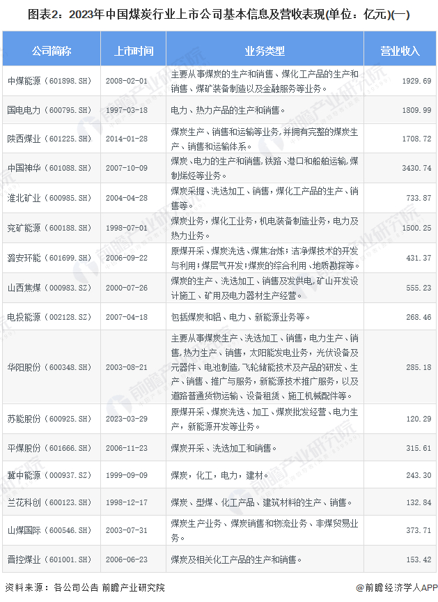 在煤炭行业的上市公司中,上市最早的是国电电力,于1997年登陆上交所;业绩表现最好的是中国神华,2023年实现营业收入3430.74亿元。