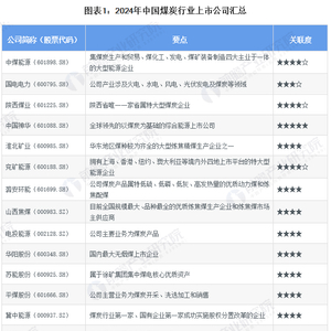 行业主要上市公司:中国神华(601088.SH)、中煤能源(601898.SH)、陕西煤业(601225.SH)、兖矿能源(600188.SH)、潞安环能(601699.SH)等
