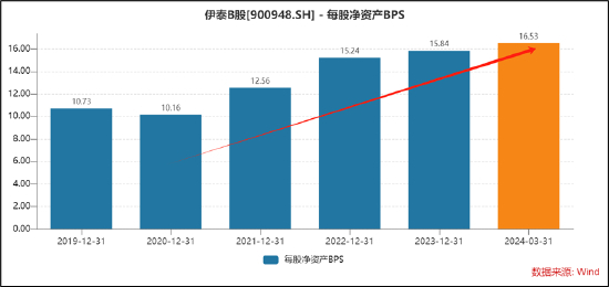值得注意的是,伊泰B每股净资产逐年增长,今年一季度末每股净资产高达16.53元。然而公司目前股价却仅为1.78元/股,公司股价似乎与每股净资产出现倒挂。需要指出的是,中国神华一季度末每股净资产为21.46元,而目前股价为43.5元/股。