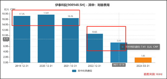 值得注意的是,伊泰B出现大存大贷现象。2021年至2023年及一季度末,公司的全部债务分别为302.70 亿元、212.52亿元、170.41亿元及226.09亿元。在较高债务情况下,公司的利息成本也不低。2021年至2023年利息费用分别为16.46亿元、10.65亿元及7.41亿元。需要强调的是,公司向财务公司贷款成本显著高于其从财务公司获取利息收入,2023年年报显示,其在财务公司的存款利率范围为0.35%-1.55%,贷款利率范围为2.9%-3.85%。公司一边较高成本贷款,一边又较低利率水平存于财务公司,这种资金结构安排又是否合理?