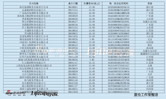 部分财务公司截图如下:
