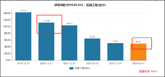 值得注意的是,伊泰B还出现巨额在建工程通过资产减值进行“一键清零”等现象。2021年,公司在建工程超百亿元,而至2024年一季报末,公司在建工程仅剩近50亿元。公司在建工程大幅减少背后是大额在建工程资产减值计提近60亿元,其中伊泰B于2020年在建工程资产减值超30亿元,2022年又进一步减值28亿元。