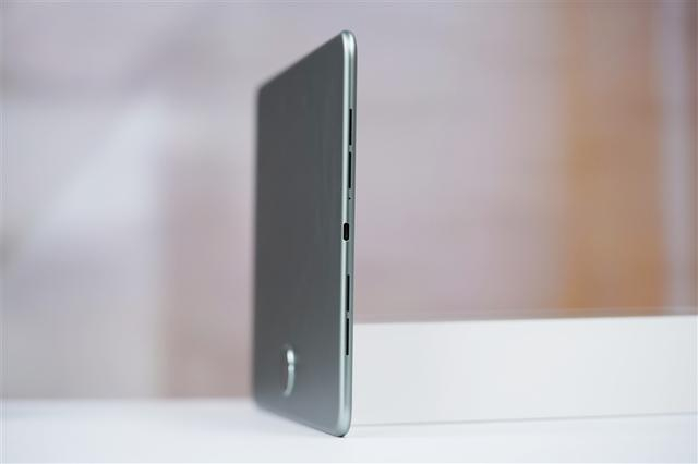一加平板Pro的侧边细节,厚度在6.49mm、584g的重量,在平板品类中还是较为轻薄的。