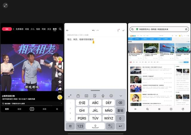 值得一提的是,它并不挑APP,购物类、视频类、笔记类、网课类APP它也支持三窗并排显示,能够让你同时看视频、看网页、记录笔记,窗口的顺序都可以依据你的习惯来随心排序,发挥出平板的大屏价值。