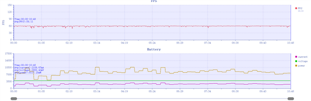 从上图可以看出,整体曲线基准在60 FPS,虽然略有一定的波动,但都在幅度并不算大。