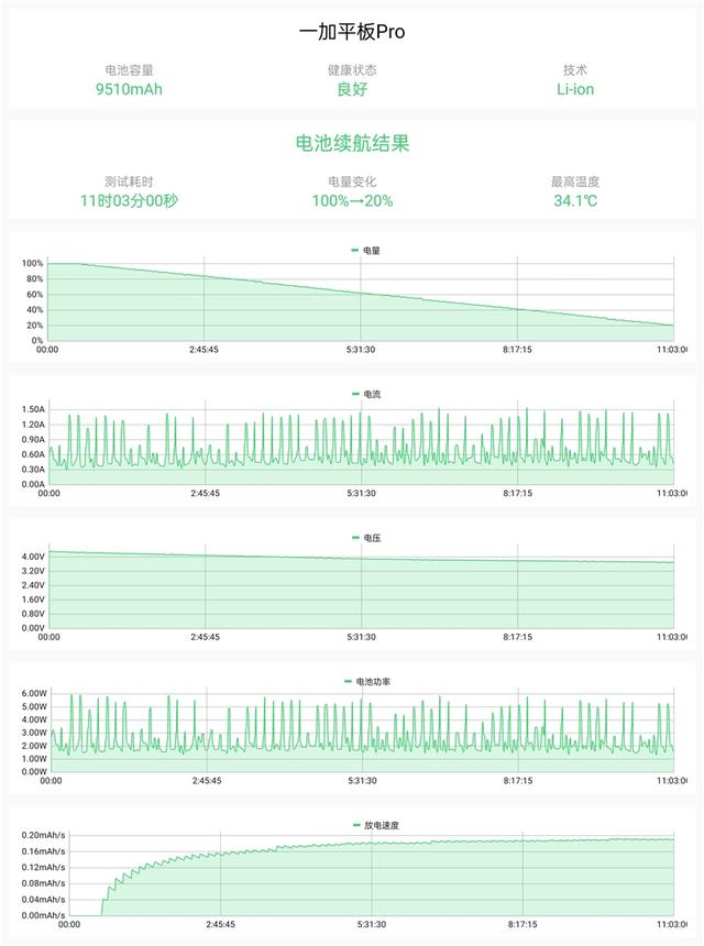 经过电池狗狗的测试至剩余20%电量,得到了11小时的续航成绩。