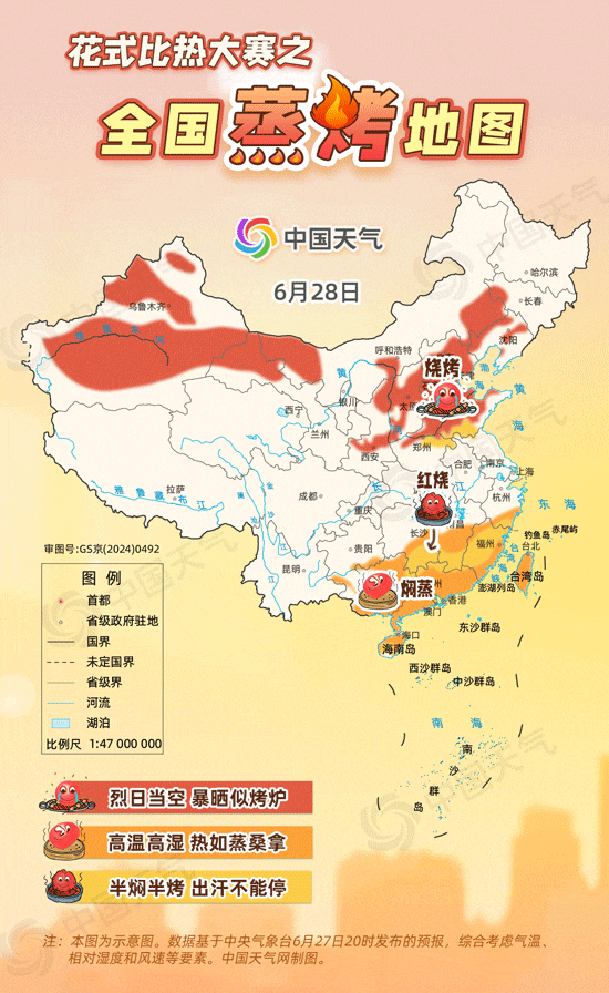 河北省气象灾害防御和环境气象中心2024年6月28日11时发布中暑气象风险等级预报: