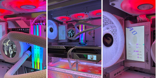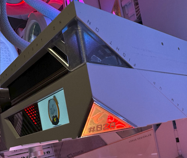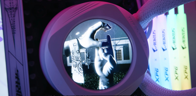 同样的,RTX4080SUPER钛金雕显卡也有一块LCD显示屏,默认信仰模式下可显示实时的GPU和VRAM信息监控,也可以自定义文字、图片以及GIF动图。比如谢帝就在冰雕X360水冷上DIY了COUPLEHUNNID手势,这种图片也可以在RTX4080SUPER 钛金雕显卡上展示。