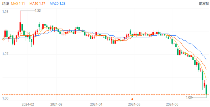 近期,海航控股的股票持续下挫,股价已跌至1元附近。6月28日,海航控股股价再度大跌,收盘下跌6.42%,股价跌至1.02元/股,已逼近“退市红线”。按照退市规定,如果上市公司股价连续20个交易日低于1元,将被采取面值类强制退市措施。