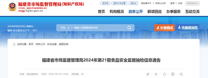 福建省市场监督管理局2024年第21期食品安全监督抽检信息通告