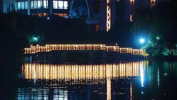 黄兴公园晚间的蓝色渐变调富有诗意,临近7月浣纱湖中点缀上了各色花苞,再过不久便可见到满池盛开的荷花,白日无法欣赏它娇艳的身姿,夜间可别错过了。