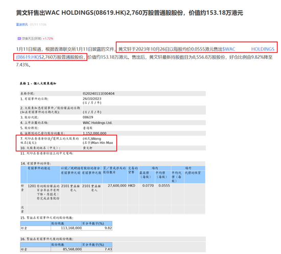 另据西证国际证券公告,2024年2月29日,黄文轩将其持有的嘉腾证券30%股权出售转让。