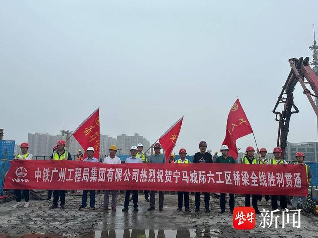 据中铁广州局宁马城际项目负责人周志介绍,此次贯通的区间为牧龙站~铜井站区间,全长4189.9米,区间内地下管线错综复杂,且桥梁多次跨越重要交通路口、河道以及下穿110kv、220kv高压线施工。在面临上有高压线,下有管线、河道等多重困难下,南京地铁始终本着高起点策划、高标准建设、高效率推进的原则。针对上有高压线施工,南京地铁协调各参建单位,组织专家进行多次论证,采用保护性施工方案完成桥梁下穿施工;针对跨路口及河道施工,南京地铁组织召开专题会议,采用挂篮施工工法、全封闭式交通导改方案以及运用创新性的模板滑移技术,全面助力施工生产。同时,南京地铁要求工区实行责任包保制度,责任到人,落实到位,科学优化施工工序,安排技术人员全程盯控,切实消除各类安全隐患,充分保障施工质量,为宁马城际铁路(南京段)牧龙站~铜井站区间顺利贯通奠定了坚实的基础。
