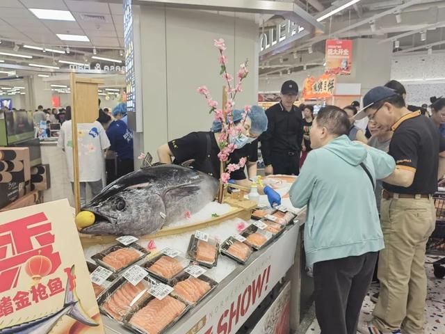 新店不仅商品丰富,还进一步升级了购物体验。现场,卤牛肉、烤鸡、榴莲等摊位前人流不断,金枪鱼摊位前更是挤满了围观的市民。“现场开金枪鱼让我大开眼界!食材新鲜还有试吃和优惠活动,今天一站式购齐全了。”市民叶博文表示。