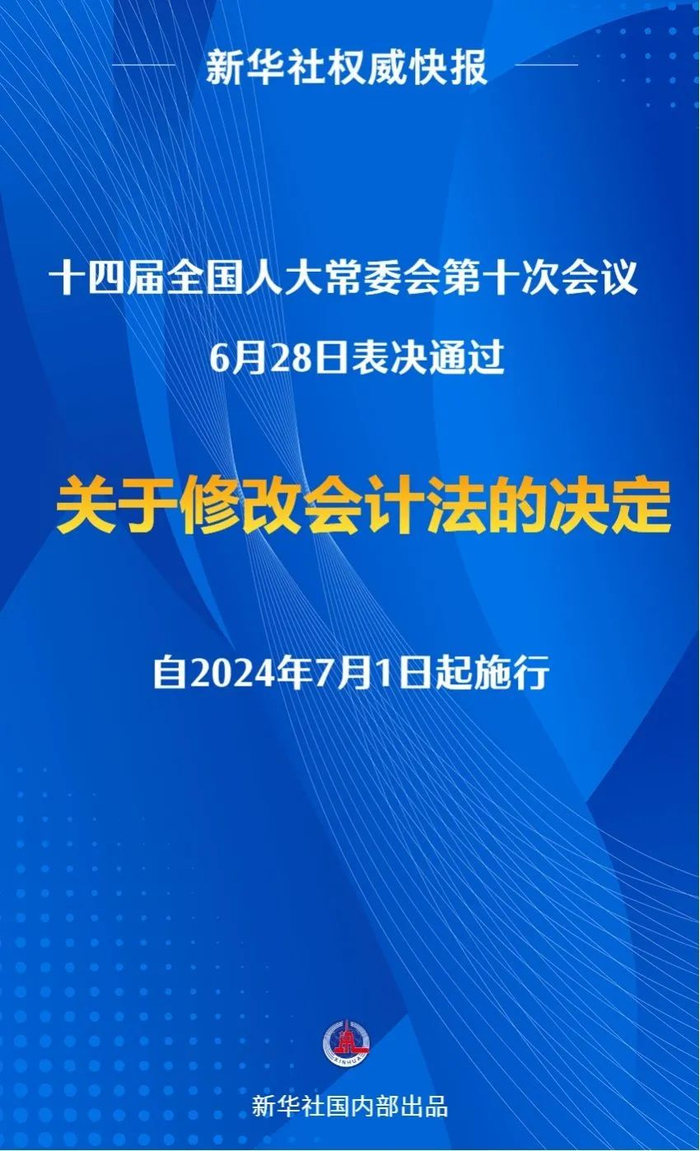 会计法是规范会计工作的基础性法律。6月28日,十四届全国人大常委会第十次会议表决通过关于修改会计法的决定,自2024年7月1日起施行。