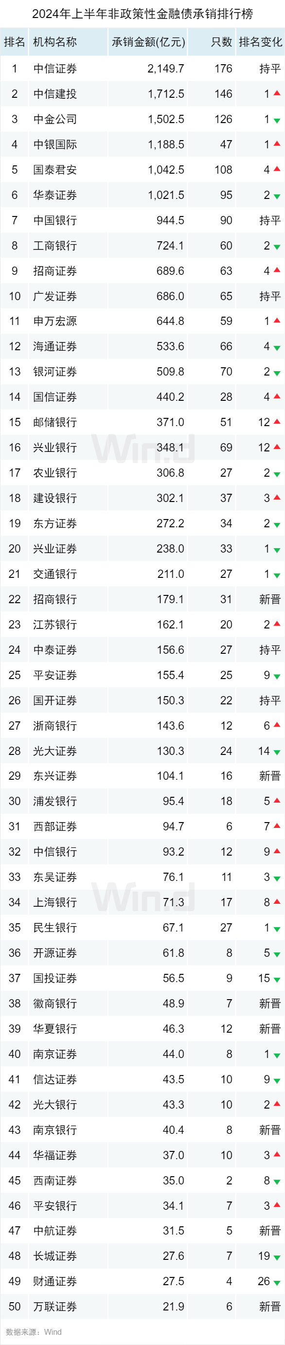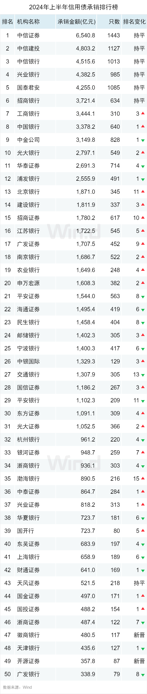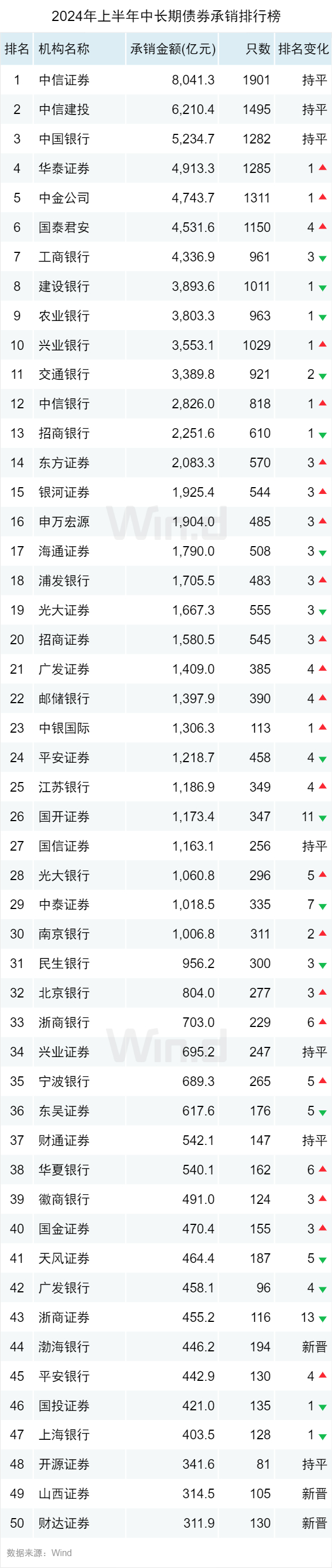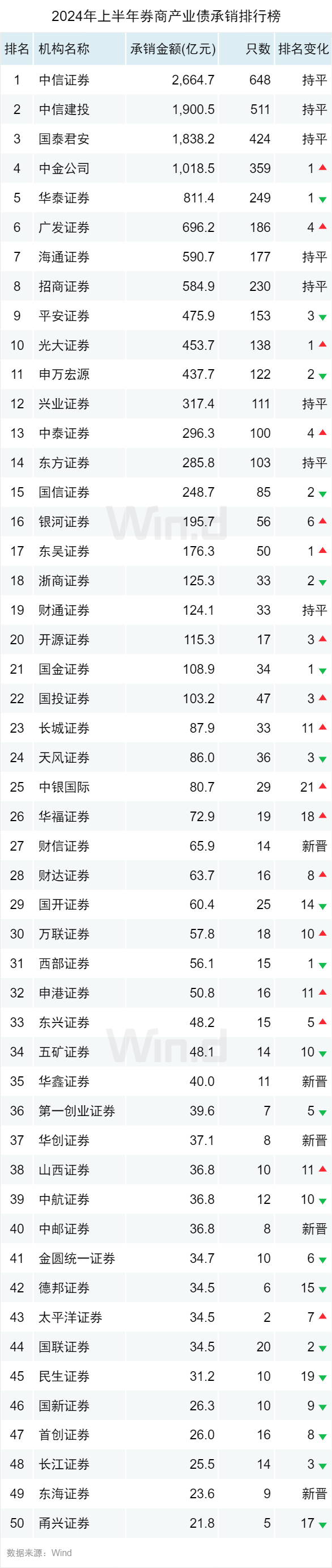 2024年上半年债券承销排行榜