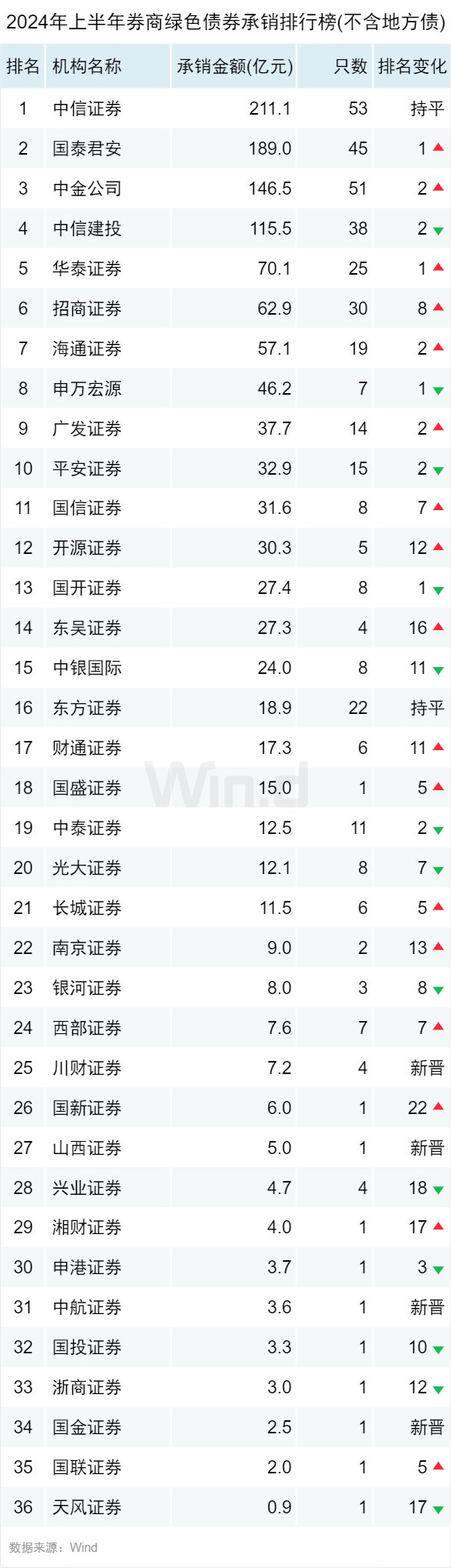 券商绿色债券承销排行榜(不含地方债)