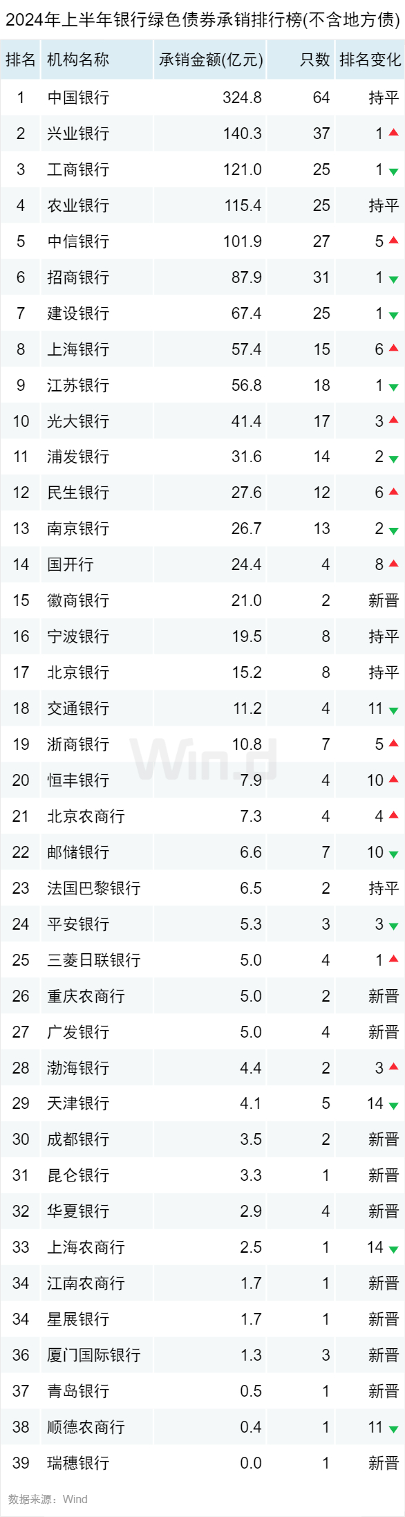 银行绿色债券承销排行榜(不含地方债)