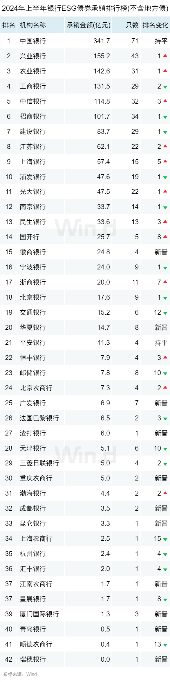 ESG债券承销排行榜