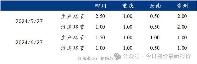 从西南各地库存情况来看,西南养殖环节、贸易环节库存压力均有所增加,截止到6月27日,西南地区生产环节库存多维持在1-2天,流通环节库存多维持在0-1天,其中生产环节平均库存天数为1.13天,较上月同期增加了0.38天,流通环节平均库存天数为1.13天,较上月同期增加了0.25天。月内受梅雨季节天气影响,各环节情绪偏谨慎,加之当前学校即将放假,各环节多维持低位库存。