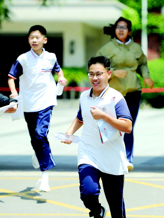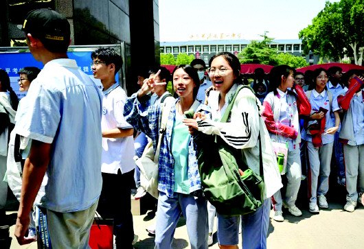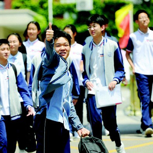 2024年济南中考结束,考生兴奋地竖起大拇指。