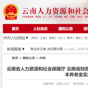 6月28日云南省人力资源和社会保障厅网站发布关于印发云南省2024年调整退休人员基本养老金实施方案的通知详情如下↓