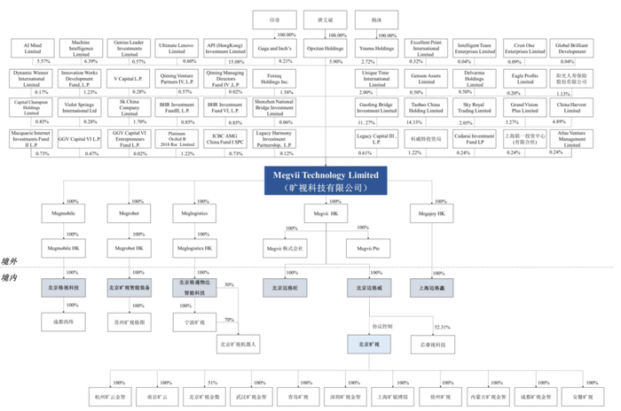 递表前,旷视科技实控人印奇、唐文斌、杨沐三人合计控制公司16.83%股份,行使表决权合计70.28%。