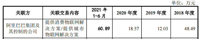 报告期内,公司向阿里巴巴及其控制的公司采购云端服务和相关硬件金额分别为2184.79万元、3599.85万元、1848.42万元及955.68万元;向蚂蚁集团及其控制的公司支付平台服务费分别1.46万元、2.97万元、37.07万元及0.92万元。