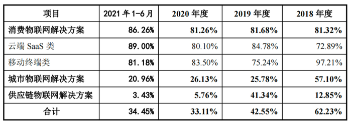 对于城市物联网解决方案毛利率大幅度下降,旷世科技表示,2019 年以来,随着行业经验不断积累、项目设计与交付能力不断提升,公司为了更好地服务客户需求、打磨公司地操作系统产品和自研智能硬件产品,推进软硬一体的战略方针,承接全栈式的软硬一体解决方案,项目中的硬件收入及对应的硬件成本占比提升,导致城市物联网解决方案业务毛利率有所下降。