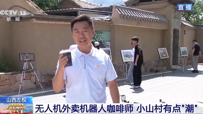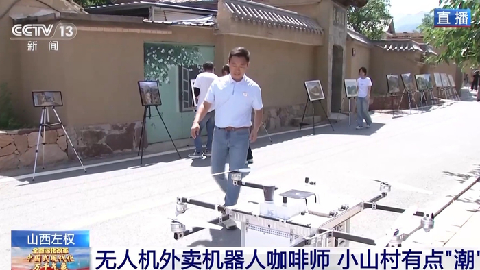 随着前来写生的人越来越多,泽城村的“卖点”逐渐多了起来。小小的一杯咖啡在城市里不足为奇,但是在这里我要通过这杯咖啡介绍两个特点。第一点,这杯咖啡不是我从店里自取,也不是外卖小哥送过来的,而是在直播前我通过由村民操控的这架无人机收取的,这个无人机可携带10公斤货物送达10公里外的顾客手中。但是无人机外卖只是它其中一项业务,如果村里急需医疗物资或者在灾害环境中运送紧急物资,它都是一把好手。