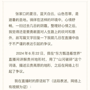 称贵州“山河破碎”?东方甄选主播致歉