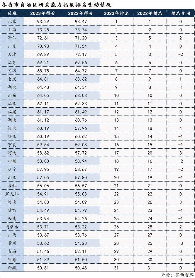 31省市研发能力评估:东部地区优势明显,河北上升幅度最大|区域科技创新能力评估③