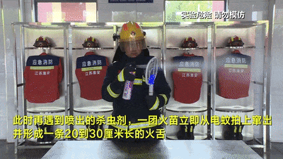 杀虫剂喷到有电火花的电蚊拍