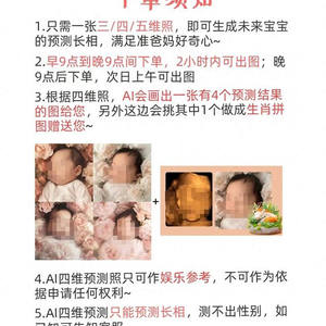 AI如何预测未来胎儿的长相?记者询问多个商家了解到,电商平台的制图流程通常是消费者先向店铺客服发送一张或多张胎儿的四维照片,选片的优先级为“正脸轮廓清晰>正脸有遮挡>侧脸轮廓清晰>侧脸有遮挡”,商家根据所发照片确认是否可以制作。消费者在确定可以制图后,付款下单。根据不同店铺的出片时间,一般在几分钟至两个小时,消费者即可获得一张电子版胎儿长相预测图。