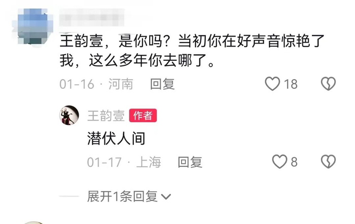 当年《中国好声音》第一季中,王韵壹在庾澄庆组获得亚军,但相较其他选手之后的陆续发歌,她沉寂了很长一段时间。