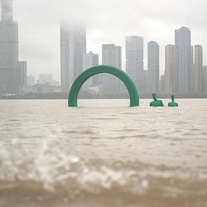 6月29日在武汉汉口江滩拍摄的被江水淹没的雕像