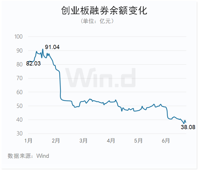 2024年上半年末,创业板融券余额为38.08亿元,较年初减少43.95亿元,上半年融券卖出量持续减小。