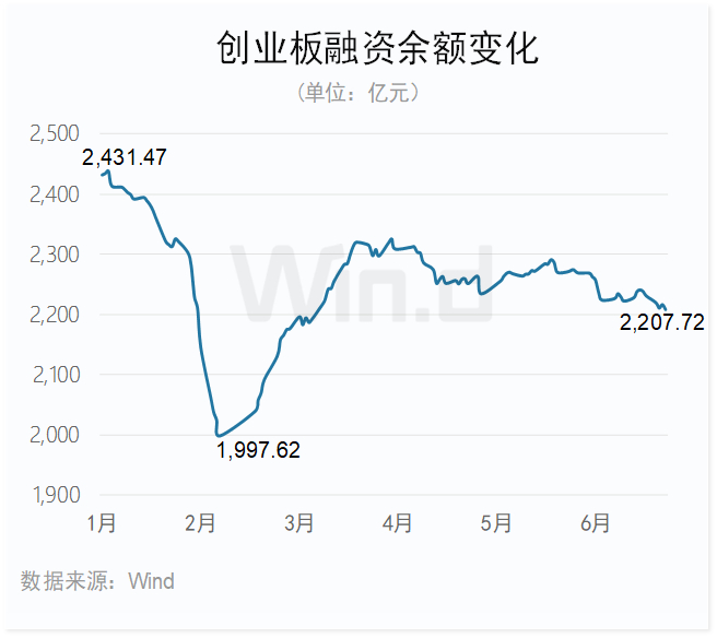 2024年上半年末,创业板融资余额为2207.72亿元,较年初减少223.75亿元,杠杆资金买入规模仍较大。