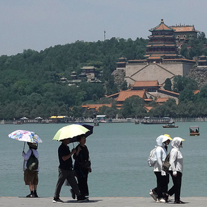2024年6月17日,北京,游客撑伞顶烈日在颐和园游览。视觉中国 资料图