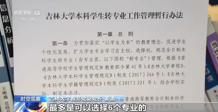 吉林大学教务处副处长姜湧:每个年级每个同学在报转专业的时候,最多是可以选择6个专业的,两年放在一起,最多可以选择12个专业。