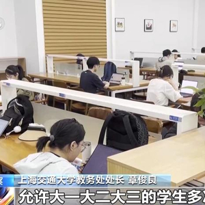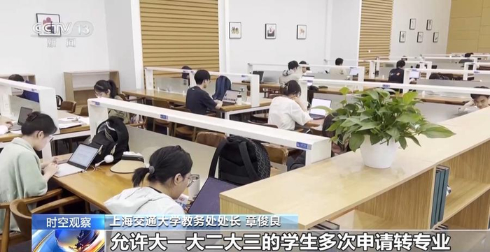上海交通大学教务处处长章俊良:允许大一大二大三的学生多次申请转专业,让所有学生都有平等的机会和选择权,帮助学生来提升自己的专业满意度,实现个人职业规划目标。
