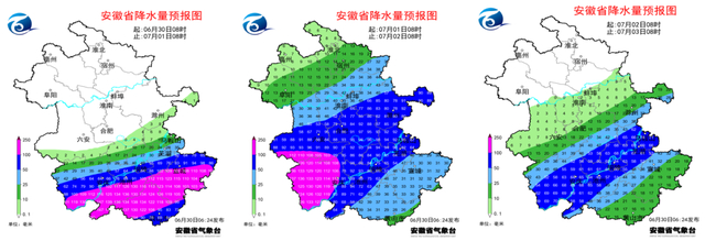 预计,6月30日08时至7月1日08时,安徽南部等地部分地区有大暴雨,局地有雷暴大风等强对流天气。