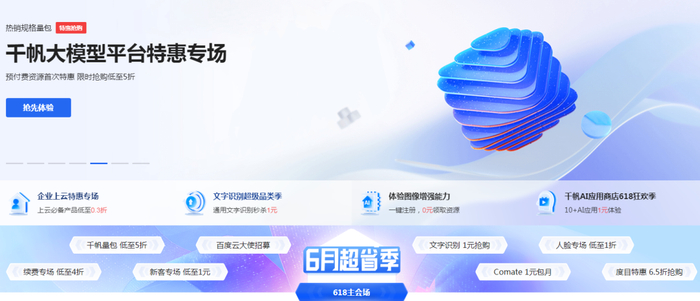 例如,百度智能云千帆推出大模型普惠计划,帮用户实现0成本切换,还将为新注册企业用户提供0元调用、0元训练、0元迁移、0元服务等服务。
