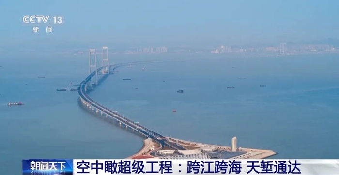 总台记者 吴媚苗:全长24公里的深中通道,其中桥梁部分长约17公里,海底隧道长约6.8公里。深中大桥高大威武,主跨达到1666米,主塔高270米,相当于90层楼高,这是全球最高的海中大桥。从桥面到海平面,深中大桥留出了91米的空间,约等于30层楼的高度,这是给未来世界上最大的集装箱船预留的空间。