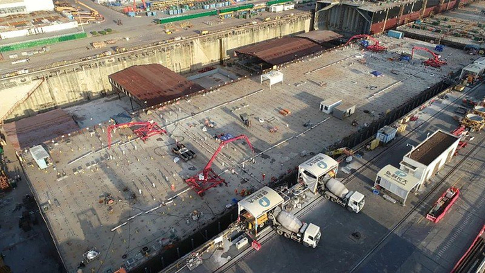 2022年,深中通道沉管隧道E27管节正进行浇筑预制