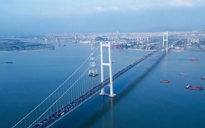 比如,深中通道伶仃洋大桥的主跨达1666米,是世界上跨度最大的全离岸海上钢箱梁悬索桥;桥面距离海平面的高度达到91米,相当于30层建筑物的高度,使其也成为世界上通航净空最高的海上大桥。